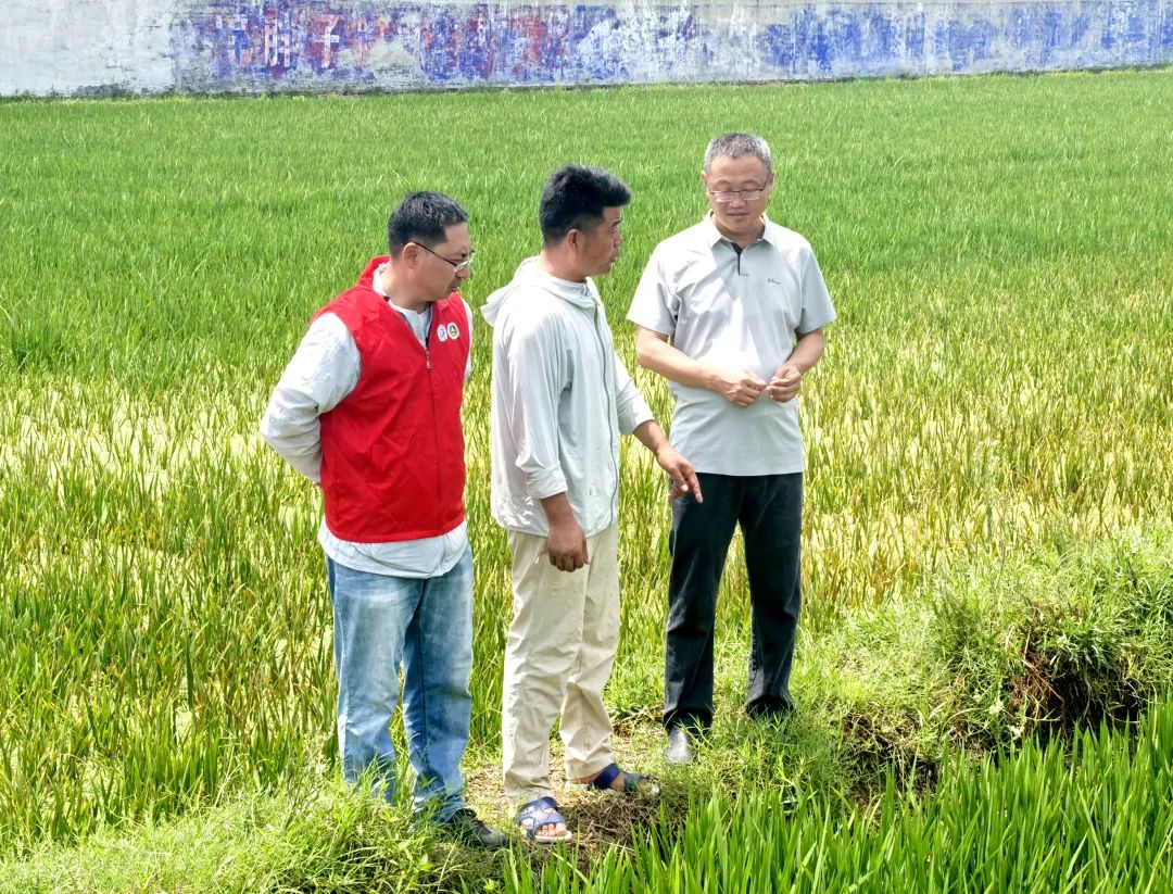 在此次技术指导过程中,李俊周教授、杜彦修副教授还受河南省科技厅的委托,履行河南省科学技术特派员的职责,在农业种植示范基地开展水稻苗期水肥管理技术指导,现场解答种粮大户的难题。他们在技术指导过程中还强调,当前水稻已进入分蘖后期至抽孕穗期,在此过程中的管理对水稻生长非常关键,务必密切关注稻田分蘖情况与科学晾田等关键环节。同时,要高度警惕病虫害发生,特别是一些高发病虫害要提前做好预警监测,做好穗期一喷多促的工作,为丰产丰收奠定基础。